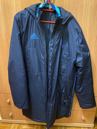 Parka negra con interior acolchado. - Capucha ajustable. - Cierre de cremallera. - Bolsillos exteriores.