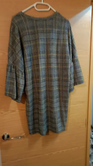 Vestido de niña con estampado de cuadros. - Diseño de manga larga. - Cuello redondo. - Tejido con textura.
