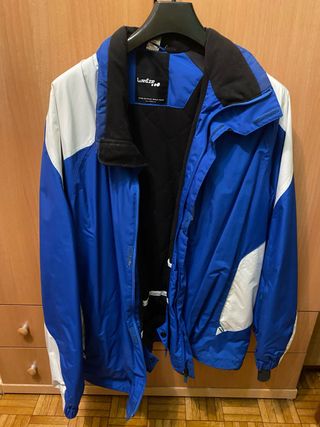 Chaqueta de montaña y nieve para hombre, con un diseño moderno en azul y blanco. le falta la capucha - Cierre de cremallera frontal. - Cuello alto con forro interior. - Puños ajustables con velcro.