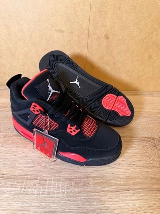📦 No entrega presencial, solo envío InPost. ⚡️ Envío en 1 día hábil. 👟 Nuevo y original, con caja. 💰 Negociable, no rebajas excesivas. Zapatillas deportivas Jordan 4. - Diseño en color negro y rojo. - Talla 39.