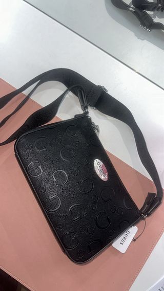 Bolso negro con el logo de Guess grabado. - Diseño con monograma. - Cierre de cremallera. - Insignia metálica con el nombre de la marca.