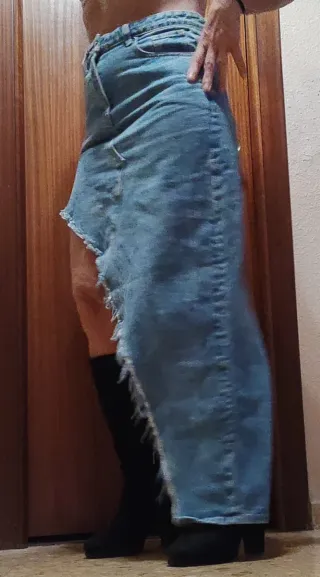Falda vaquera de Alexander Wang con un diseño asimétrico y moderno. Perfecta para un look atrevido. - Corte asimétrico. - Detalle de bajos deshilachados. - Cintura: 79cm - Largo: 102 - Largo simetría desde cintura: 32cm
