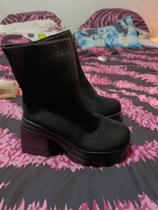 Botines negros elásticos con plataforma y tacón grueso. - Material exterior elástico. - Suela de goma con plataforma. - Tacón grueso.