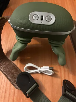 Masajeador eléctrico con diseño ergonómico y patas flexibles. - Botón de encendido/apagado. - Puerto de carga USB. - Botón de función de calor. - Correa ajustable para mayor comodidad.