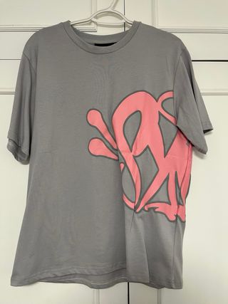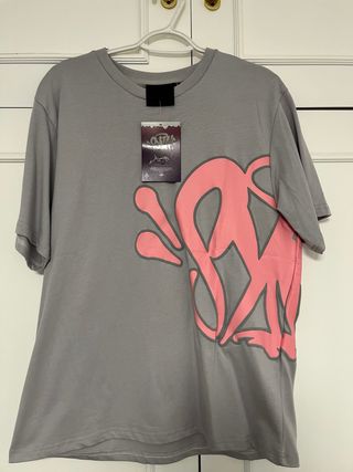 Camiseta de la marca Syna World con un diseño llamativo. - Color principal gris. - Detalle frontal en color rosa. - Estilo moderno y urbano.