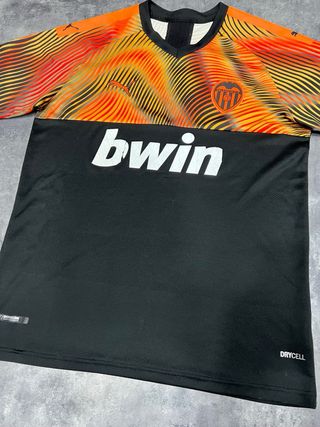 Camiseta original Puma segunda equipación la temporada 2019-20 del Valencia CF, una de las más icónicas por su diseño de ondas naranja/amarillo estilo “fuego”. Producto oficial con tecnología DryCell. Talla L Ancho 56 cm Largo 74 cm La parte superior está impecable y los colores muy vivos. ➡️ Importante: el sponsor Bwin está cuarteado, típico en este modelo. No afecta al uso. Perfecta para coleccionismo, looks deportivos o entrenar. 📌 Detalles: • Producto oficial Puma • Temporada 20/21 • Sponsor Bwin • Colores vivos • Sponsor desgastado (ver fotos) • Tecnología DryCell Envío rápido y protegido.