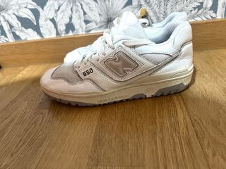 Zapatillas de estilo urbano New Balance 550. - Diseño clásico en blanco y gris. - Logo 'N' característico en el lateral. - Detalle '550' en el panel lateral.