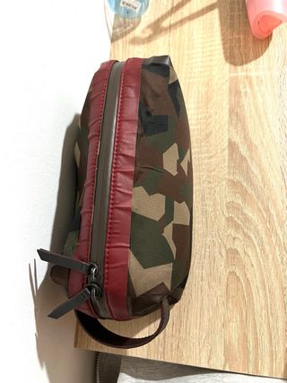 Neceser con estampado militar de Purificación García. Un accesorio práctico y con estilo. - Diseño de camuflaje. - Asa lateral para facilitar su transporte. - Cierre de cremallera.