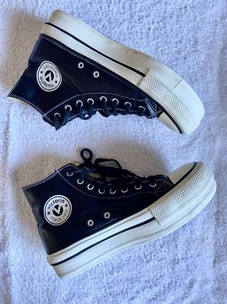 Zapatillas Victoria Piel Negra Plataforma