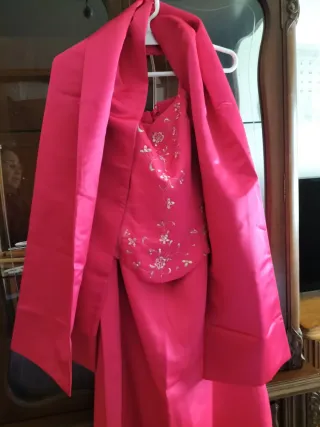 Vestido de dos piezas , falda larga con corpiño y un chal