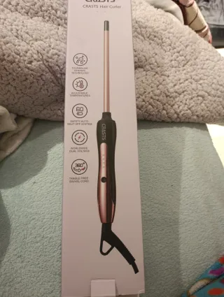 Tenacilla para el pelo de la marca CRASTS, con un diseño elegante en negro y dorado. - Tecnología de turmalina y cerámica. - Temperaturas ajustables. - Sistema de apagado automático de seguridad a los 60 minutos. - Voltaje dual para uso mundial. - Cable giratorio libre de enredos (360°).