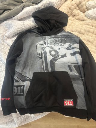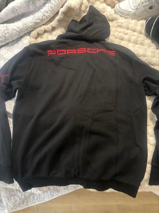Sudadera Puma Porsche 911. Impecable, muy poco uso. - Diseño frontal con coche de carreras. - Detalle 911 en la parte frontal y en la manga. - Inscripción GT3R en la manga izquierda. - Logo Puma en manga derecha. - Bolsillo canguro en la parte delantera.