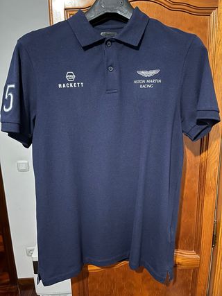 Polo de manga corta de la marca Hackett con diseño Aston Martin Racing. - Logo de Aston Martin Racing en el pecho derecho. - Logo de Hackett en el pecho izquierdo. - Cuello tipo polo con botones.