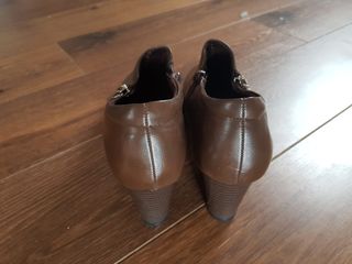 Zapatos marrones de tacon, talla 39. Con cremalleras a ambos lados. Marca Q Passi. Usados solo una vez y exclusivamente en interior. Estan practicamente nuevos (Ver fotos). El tacon mide 5,5cm de altura.