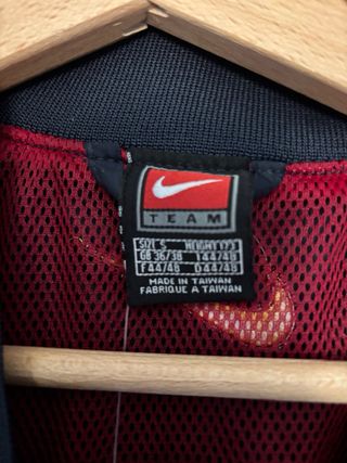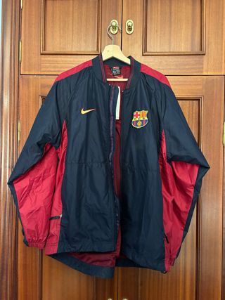 Cortavientos vintage del FC Barcelona, marca Nike. - Diseño en color azul y rojo. - Estilo bomber. - Ideal para coleccionistas.