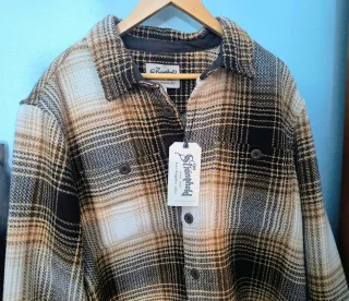 Sobrecamisa de cuadros de la marca The Stronghold, sin estrenar. - Diseño a cuadros en tonos beige y marrón. - Atemporal.