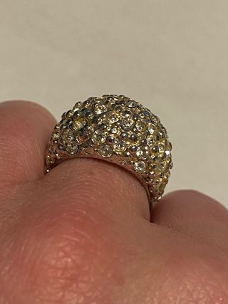Elegante anillo de la marca Cristian Lay, con un diseño llamativo y brillante. - Acabado plateado. - Decorado con múltiples circonitas. - Diseño abombado y texturizado.