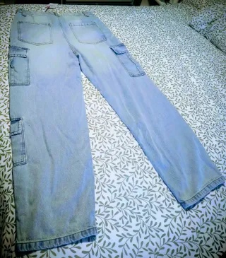 Vaqueros estilo cargo de la marca Lefties. - Talla EUR 42 / MEX 32. - Diseño denimwear. - Color azul claro con efecto desgastado.