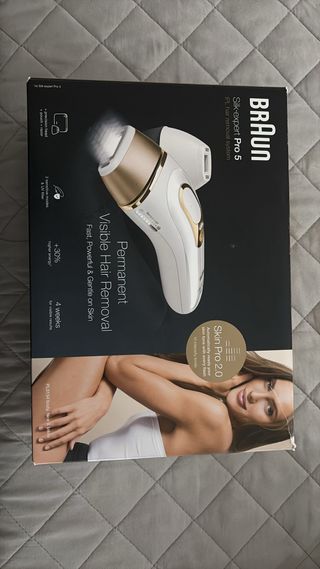 Depiladora IPL Braun Silk-expert Pro 5. - Solo 4 sesiones de piernas completas. - Sistema de depilación permanente. - Elimina el vello visible de forma rápida, potente y suave. - Incluye 2 modos sensibles y filtro UV. - Tecnología Skin Pro 2.0 que adapta la intensidad a tu tono de piel. - Resultados visibles en 4 semanas.