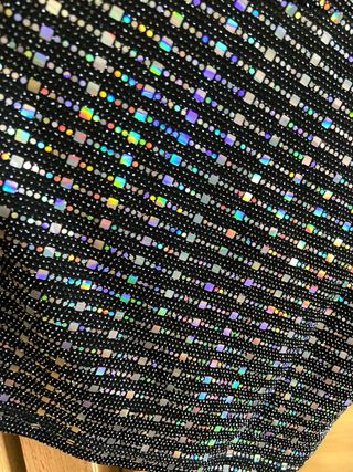 Top de fiesta con un diseño llamativo y brillante. - Tejido con lentejuelas multicolores. - Diseño asimétrico con un hombro descubierto y manga larga.