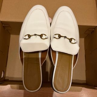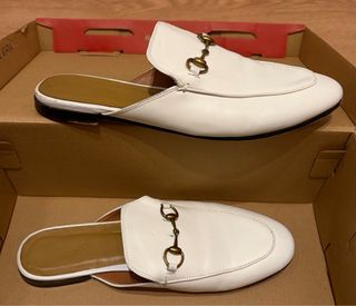 Mocasines destalonados estilo Princetown de Gucci. - Diseño destalonado. - Detalle de herraje metálico. - Piel blanca.
