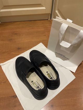 Lujo suizo de vanguardia y confort absoluto. Vendo estos exclusivos mocasines de la prestigiosa casa BALLY. Este modelo representa el equilibrio perfecto entre la artesanía tradicional de lujo y la innovación moderna, ofreciendo un estilo único que no pasa desapercibido. • Material: piel premium en con un tacto excepcional. • Detalle Distintivo: Talón técnico reforzado en material engomado negro con el icónico logo de la marca grabado, lo que garantiza máxima durabilidad y un ajuste moderno. • Interior: Forrado íntegramente en piel de la más alta calidad, característica fundamental de Bally. Precio nuevo 400e