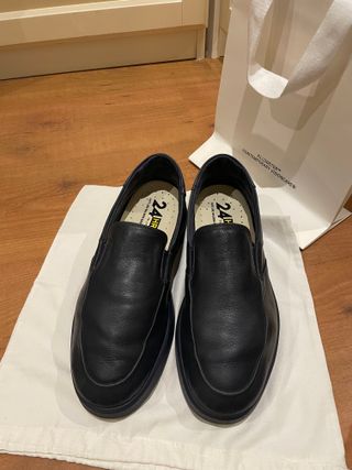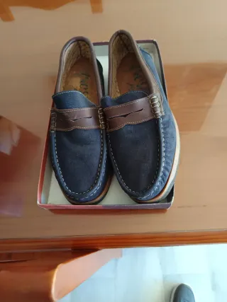 Mocasín de hombre en piel de alta calidad, súper fácil de poner gracias a sus elásticos laterales. Ideal para trabajar o caminar muchas horas sin renunciar a un estilo clásico y limpio. El zapato más cómodo que tendrás jamás. ✨ Estado: Impecable 📐 Talla: 41 (calza como una 42) 🎨 Color: Azul marino 🧵 Material: Piel (alta selección) 🧷 Cierre: Elásticos laterales (calce fácil) 👣 Plantilla: Extraíble (incluida) 📏 Puntera: Redonda 🦶 Suela: EVA ultraligera, dentada Comprados en El Corte Inglés por 139,90€.