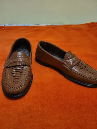 Elegantes mocasines de borlas en color marrón. - Diseño clásico con borlas decorativas. - Costuras visibles en el empeine. - Suela de cuero. -Tapas nuevas y suela