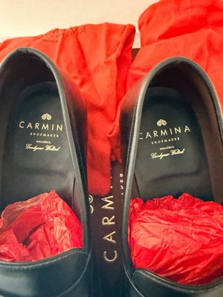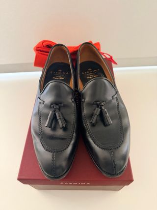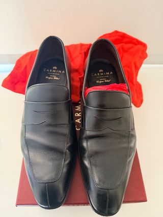 Elegantes mocasines Carmina en piel negra. Talla 8,5 - Diseño clásico de antifaz. - Acabado pulido. - Interior forrado en piel.