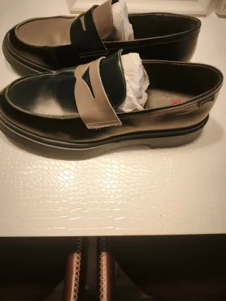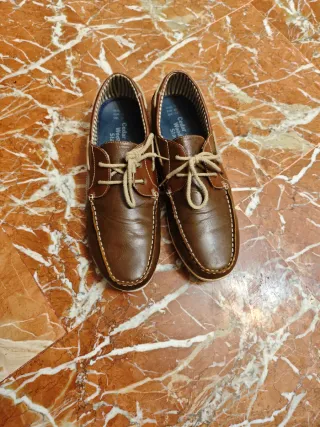 Mocasines de estilo casual en color marrón y negro. - Diseño moderno con cordones. - Suela de goma. - Detalle de costuras. 📌 Política de devoluciones: No acepto devoluciones por errores de talla o por no quedar como se esperaba. Solo se admiten devoluciones si la prenda llega dañada o en un estado diferente al descrito. 📦 Solo envíos por Wallapop. No entregas en mano. Gracias por la comprensión.