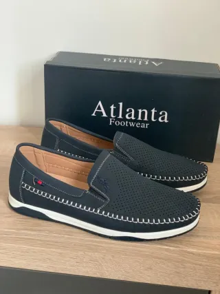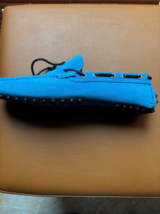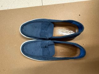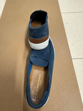 mocasines de la marca italiana Lumberjack en color azul marino! Son extremadamente cómodos y tienen un estilo entre náutico y casual que queda genial tanto con vaqueros como con chinos. • Material: Ante de alta calidad, muy suave al tacto. • Diseño: Estilo mocasín con antifaz y detalles microperforados en la parte delantera para una mejor transpiración. • Suela: Suela de goma blanca en perfecto estado, con el icónico relieve de hojas de arce de la marca (buen agarre). • Estado: Muy poco uso. Como se ve en las fotos, el ante está bien cuidado y la plantilla interior de piel está impecable. • oportunidad!
