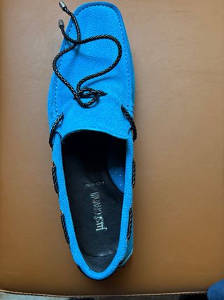 Mocasines de la marca Roberto Cavalli en un llamativo color azul. - Diseño moderno y elegante. - Elaborados con materiales de calidad. - Detalle de cordones negros.