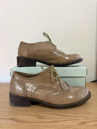 Elegantes mocasines de piel. - Diseño clásico y sofisticado. - Acabado brillante. - Cierre con cordones.