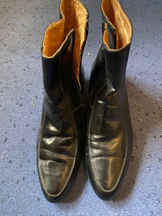 Elegantes botas de cuero negras para hombre. Un calzado clásico y versátil. - Material exterior: cuero. - Cierre de cremallera lateral. - Diseño de punta fina.