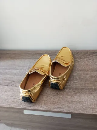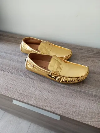 Elegantes mocasines con un acabado brillante. - Diseño acolchado en la parte delantera. - Detalle de costuras alrededor. - Acabado metálico llamativo.