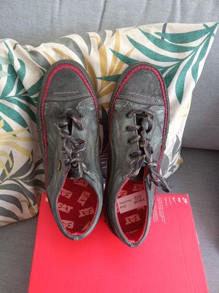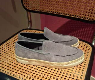 Zapatos de ante en color gris, perfectos para un estilo casual. - Material exterior de ante. - Suela con detalle de esparto. - Diseño tipo mocasín. Sólo se han usado UNA vez!!!!!