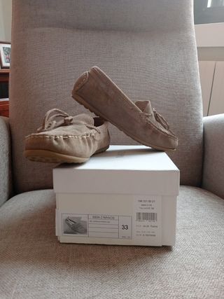 Preciosos mocasines de marca Nanos en color piedra talla 33. Se los puso en tres ocasiones, para su comunión y como invitado. Son muy cómodos. Más en mi perfil