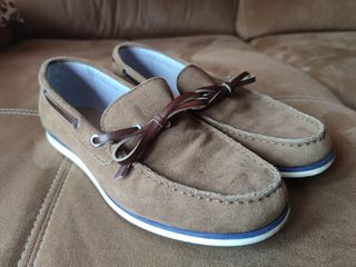 Mocasines de ante para hombre. Usados, pero en buen estado de piel, cordones y suela. Como se aprecia en las fotos, con signos de uso. - Diseño moderno y cómodo. - Material: Ante - Color: Marrón - Talla: 43