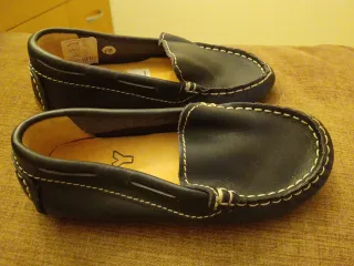 Mocasines infantiles de color azul marino número 27, perfectos para cualquier ocasión. - Diseño clásico y elegante. - Costuras decorativas en contraste. - Interior forrado para mayor comodidad. - En piel - Suela flexible.