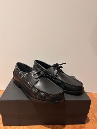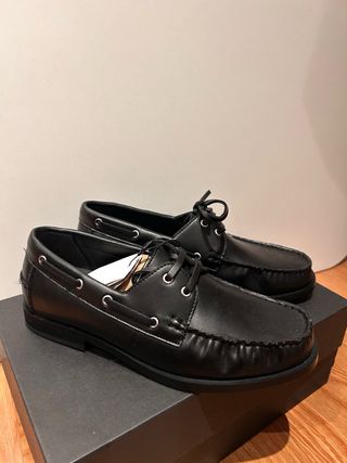 Nauticos de piel negros de Zara. - Con etiqueta, a estrenar. - Diseño clásico de mocasín. - Cordones para ajuste. - Ojales metálicos.