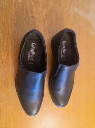Elegantes zapatos de vestir Callaghan en color negro. Talla 40 Nuevos sin estrenar Ideal para regalo - Diseño clásico tipo mocasín. - Acabado brillante. - Detalle de antifaz en la pala. - Suela de goma.