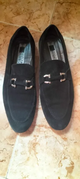 Elegantes mocasines de ante negro. - Diseño clásico con detalle metálico. - Material de ante suave al tacto. - Marca: ANTONIO PARRIEGO.