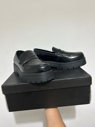 Mocasines negros con suela de plataforma. -Marca: Stradivarius -Talla: 38 - Diseño clásico. - Acabado liso. -Mocasines negros con suela track de Stradivarius. - Suela gruesa con buen agarre. - Me costaron 29 €. - Perfectos para combinar con cualquier outfit, cualquier consulta por mensaje 💕