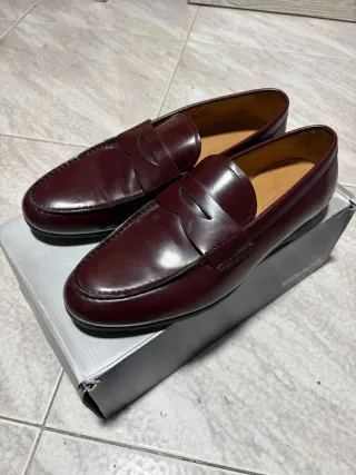 Elegantes mocasines de piel en tono burdeos. Un clásico que aporta un toque sofisticado a cualquier atuendo. - Diseño penny loafer. - Acabado brillante. - Suela de goma.
