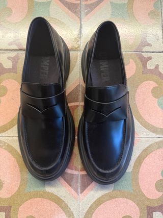 Mocasines de la marca Camper, modelo Walden. - Diseño clásico y elegante. - Suela gruesa y resistente. - Detalle de antifaz en la pala.