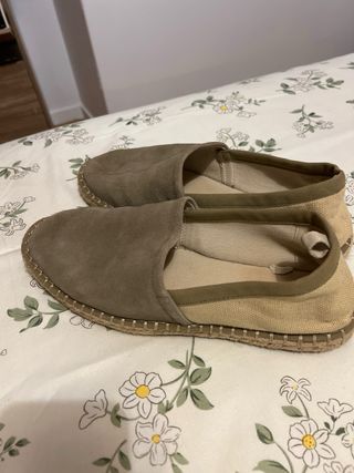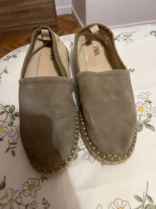 Mocasines de Zara en color verde, talla 43. - Diseño tipo alpargata. - Detalle de pespuntes en la suela. - Tirador en el talón para facilitar su puesta.