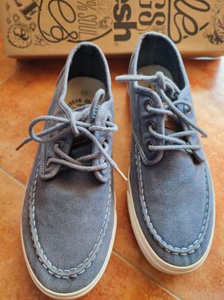 Zapatos naúticos usados para el colegio color azul marino. Talla 36