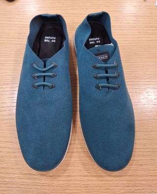 Zapatos de ante azul superligeros. Usados una vez. El final de los cordones están un poco manchados, a simple vista no se ve. Muy cómodos.