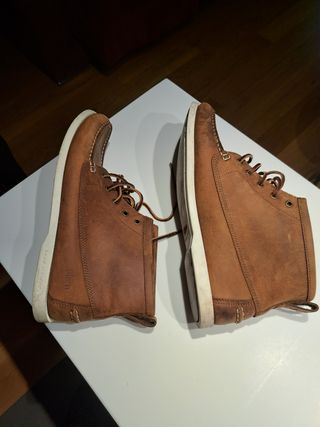 Zapatos náuticos de estilo clásico. Usado muy poco - Material exterior de ante. - Cordones marrones. - Suela de goma. - Detalle de pespuntes blancos.