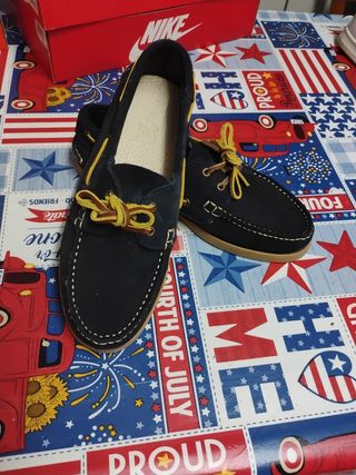 zapato náutico marino talla 42,usado en 3 ocasiones[la suela lo corrobora],busca nuevo dueño cara a la estación estival que se aproxima.es talla 42 pero es talla grande,yo suelo usar un 43/43.5 y me sirvió sin problema,va con su caja original.se vende porque ahora uso calzado más ancho.si tienes cualquier duda,encantado de intentar solucionartela,HAGO ENVIOS